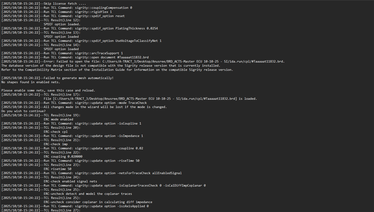 I am using Sigrity Aurora 23.1 and while performing reflection and impedance analysis, the error log initially showed:
