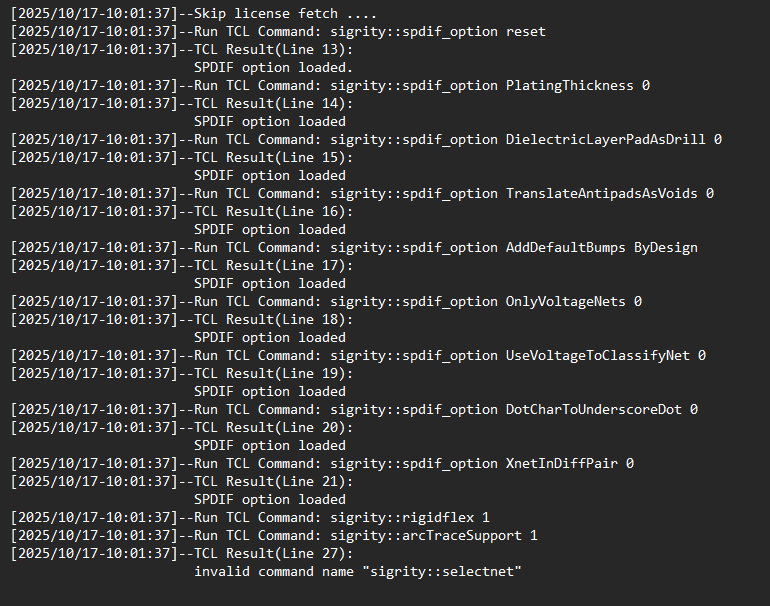 Invalid command name "sigrity::selectnet"